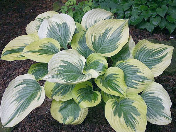 Листья крупные, очень плотные, серо-зеленые с перьевидной кремовой каймой по краю.