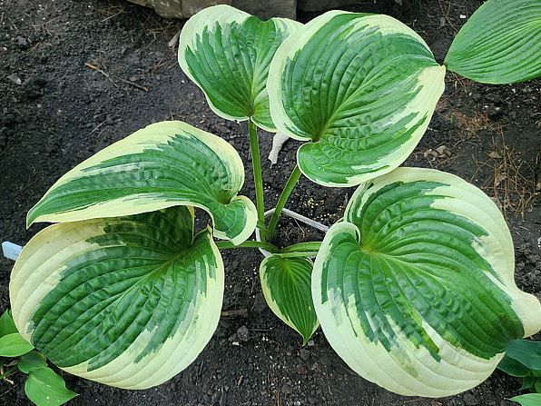 Листья зеленые с широкой кремово-жёлтой каймой, немного жатые.