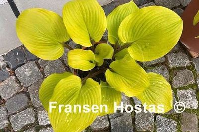 Вертикально растущие, округлые, толстые, желтые листья на фиолетовых черешках. Не зеленеют в течение сезона.