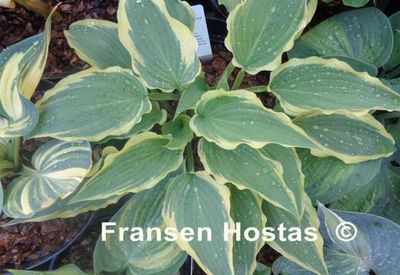 Листья удлиненные, жатые, сине-зелёные с желтой весной и кремовой летом волнистой каймой.