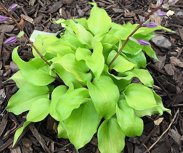 Маленькие желтые листья, сохраняющие желтую окраску в течение всего сезона, на пурпурно-красных черешках.