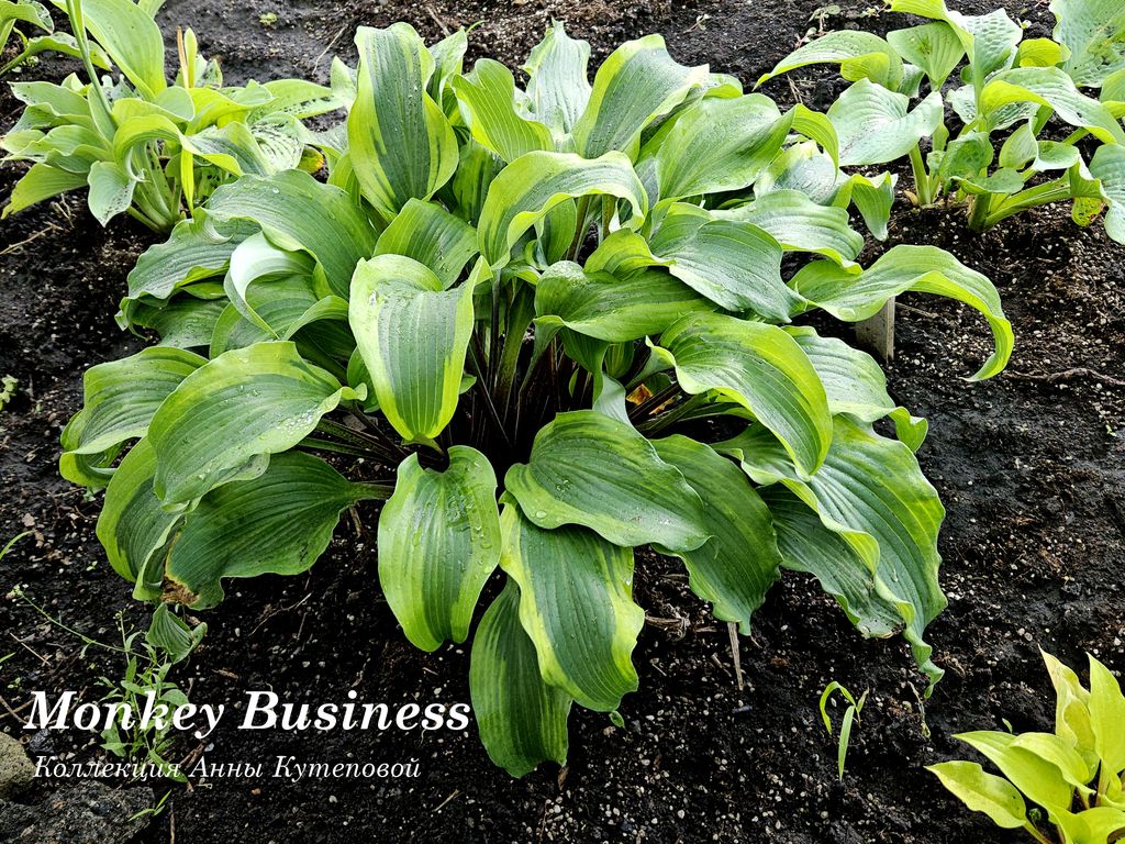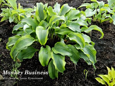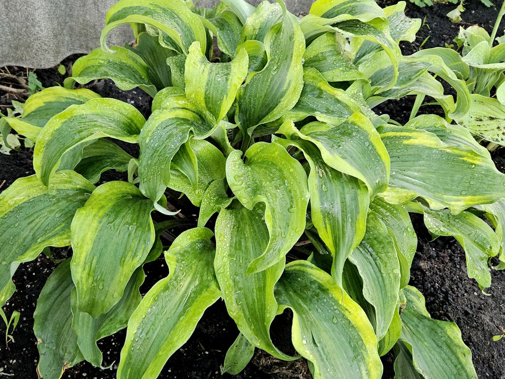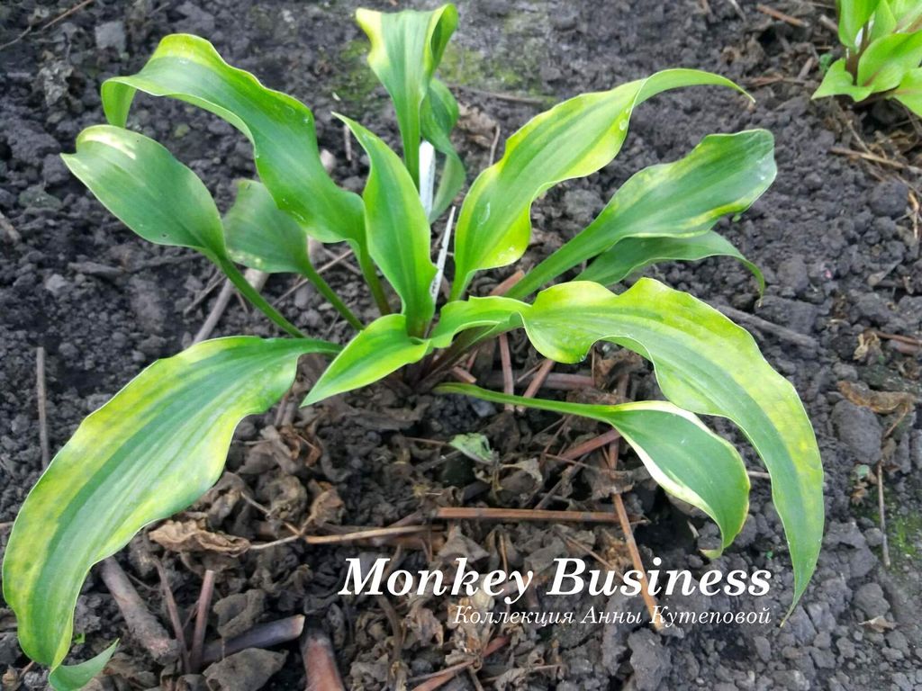 Листья длинные, изогнутые, зелёные с широкой жёлтой каймой.