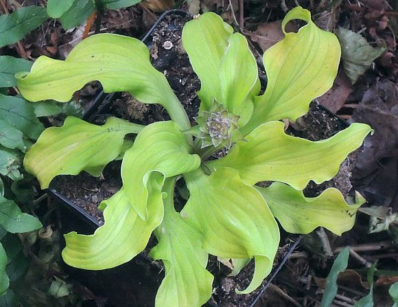 Листья жёлтые, удлинённые с волнистым краем.