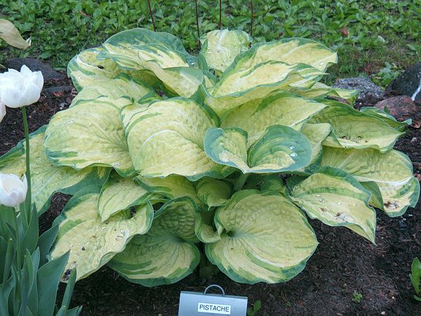 Листья светлые, неравномерно-окрашенные в белых пятнах и прожилках с широким сине-зелёным краем.