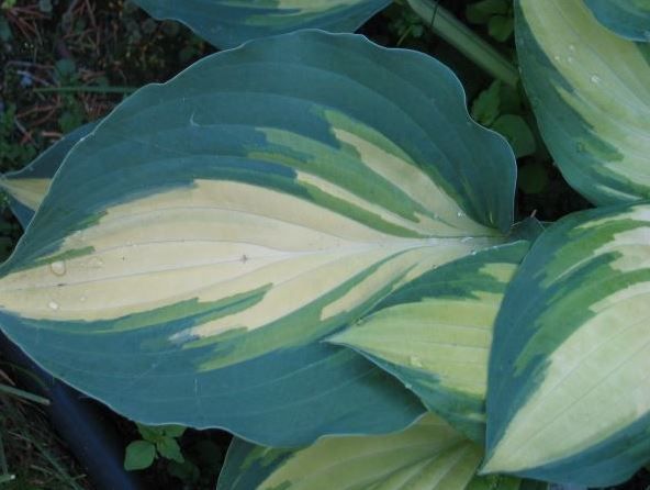Сине-зелёные листья с кремово-белым центром.