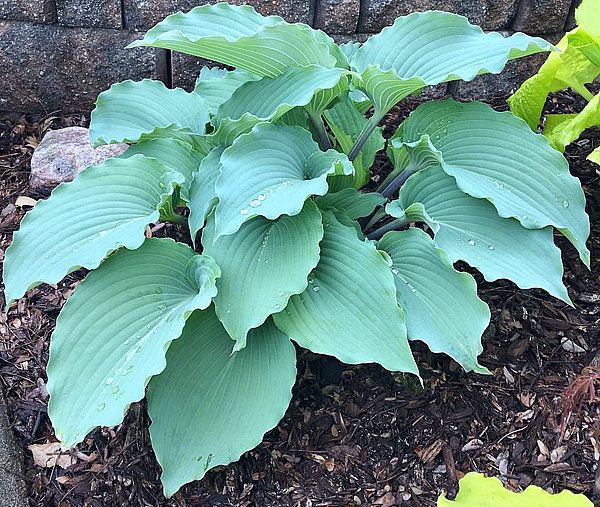 Листья на пурпурных черешках, плотные, серо-голубые, с интенсивно волнистым краем.