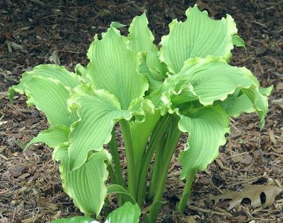 Листья зелёные с широкой кремовой каймой. Край листа волнистый, буквально кружевной!