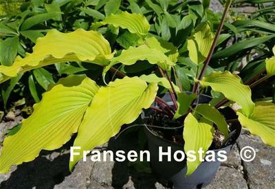 Листья желтые, с белой изнанкой и оборкой по краю. Замечательный новый сорт!
