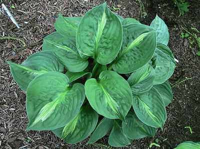 Листья плотные, глянцевые, тёмно-зелёные с узкой желтой серединкой, слегка присобранные по границе цветов.