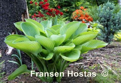 Листья округло-чашевидные, вафельные, пудрово-желтого цвета.