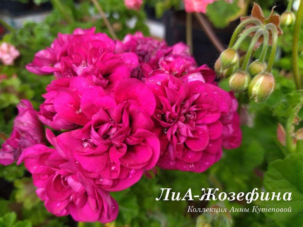 Крупные, густомахровые цветы очень темного свекольного цвета. К сожалению не смогла передать цвет на фотографии...