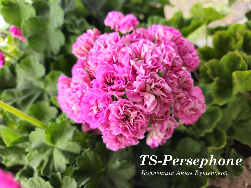 От зонартика сорт унаследовал очень крупный размер соцветий. Но при этом шапки густомахровых сиреневых цветов держатся на цветоносах средней длины, свойственных зоналкам. В остальном это чисто зональная пеларгония с компактным пушистым кустиком, который сформировался самостоятельно. Цветение суперобильное.